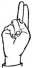 На ћирилици написано АНАСТАСИЈА КЛИНЦОВ састоји се из 17 слова [?]. Исписано ћириличном једноручном азбуком за глувонеме:
